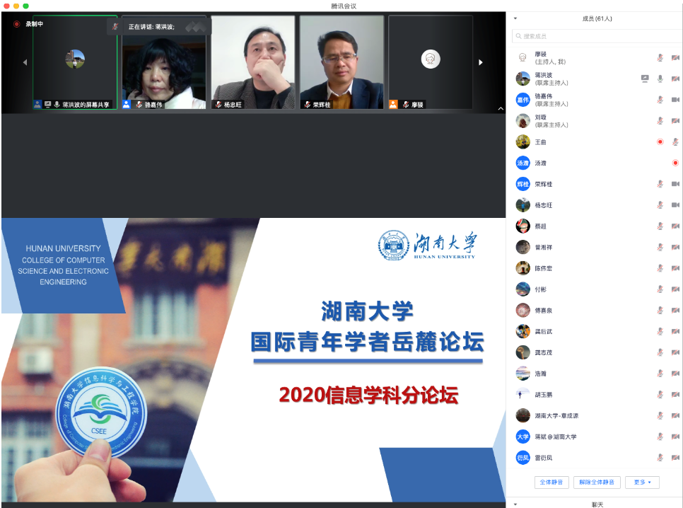 2020年12月26日上午,2020球王会官网国际青年学者岳麓论坛信息学科分论坛开幕。信息学科分论坛由球王会承办,公司党委书记杨忠旺、经理李肯立、副经理蒋洪波出席开幕式并讲话,副书记骆嘉伟主持开幕式。