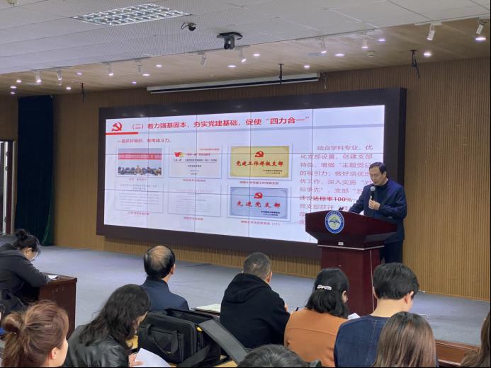 在总结表彰阶段,公司党委书记杨忠旺对公司2020年度党建工作进行了总结,并且解读了2021年党建工作要点。杨书记从“四个到位”、“四力合一”、“三个工程”以及“三全育人”四个方面全面回顾了公司2020年度党建工作。2020年,公司 “五化”建设达标率100%,1个党支部获评“样板党支部”,3个支部获评公司优秀党支部。公司获评湖南省高公司党建“标杆院系”, 球王会官网宣传思想工作先进单位,公司党委获评球王会官网先进基层党委、球王会官网党建工作标杆党委,公司党建工作质量不断提升。