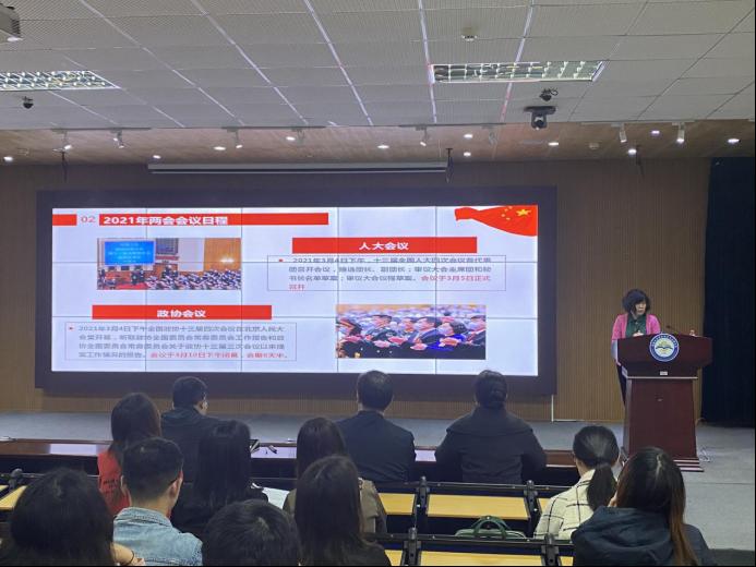 大会的总结表彰阶段在国际歌歌声中落下帷幕,紧接着进入“两会”精神宣讲阶段。公司党委副书记、纪委书记骆嘉伟从2021年“两会”的基本情况、2021年“两会”七大看点、九个关键词、2021年政府工作报告、2021年全国政协工作报告四个方面进行了专题解读。