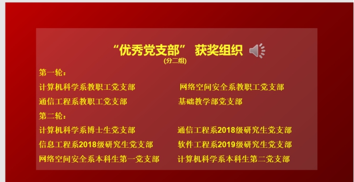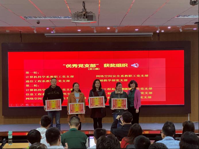 随后由公司党委副书记、纪委书记骆嘉伟宣读《中共球王会官网公司党委关于表彰2020年度公司样板党支部、优秀党支部、优秀党务工作者的决定》。计算机科学系博士生党支部等3个师生支部被授予“样板党支部”称号,计算机科学系教职工党支部、通信工程系2018级研究生党支部等10个师生党支部被授予 “优秀党支部”称号,张国田等16位同志被授予“优秀党务工作者”称号。在热烈的掌声中,与会领导为获奖组织和个人颁奖。