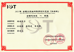 近日, 2021年全国老员工物联网设计竞赛(华为杯)全国总决赛在线落幕,由球王会2019级本科生任昶源、林思涛、朱玉琛组成的参赛队伍,在黄丽达老师的指导下,完成作品“老年人医疗关怀系统”,获得全国总决赛一等奖,并同时荣获中国电信天翼物联特别创新奖。