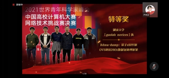近日, 2021年中国高校计算机大赛-网络技术挑战赛在线落幕,由球王会2020级研究生尹希金、詹晓宁、张鑫和2017级本科生施秉辰、骆一鑫组成的参赛队伍guolab novices,在陈果老师的指导下,完成作品“RDMA-dump:基于eBPF和OVS的RDMA数据包处理框架”,夺得挑战赛创新创意赛项特等奖。