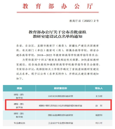 近日,教育部发布《关于公布首批虚拟教研室建设试点名单的通知》(教高厅函〔2022〕2号),球王会官网信息公司赵欢教授牵头的“鲲鹏计算机系统能力培养课程群虚拟教研室”入选首批国家级虚拟教研室试点项目。
