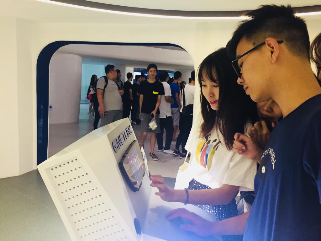 最后一站,未来科技城的人工智能小镇,以人工智能为特色,覆盖大数据、云计算、物联网等业态,集中力量招引机器人、智能可穿戴设备、无人机、虚拟/增强现实、新一代芯片设计研发等领域,浙大·阿里前沿技术研究中心、上海交大John Hopcroft计算机中心、浙江省智能诊疗设备制造业创新中心、中乌人工智能产业中心、北航虚拟现实/增强现实创新研究院、暾澜智慧谷、百度(杭州)创新中心、贝壳社等10个重大平台项目已经达成合作,同学们兴致勃勃地在科技展厅对部分研发展示的新产品进行了演示和体验。