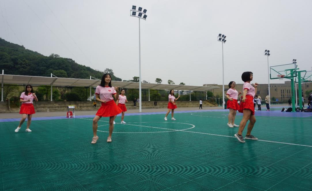 中场休息时,迎来了拉拉队表演环节。公司拉拉队队员们身着粉色上衣、红色短裙,通过一场活力四射的拉拉操表演为公司篮球队加油助威。