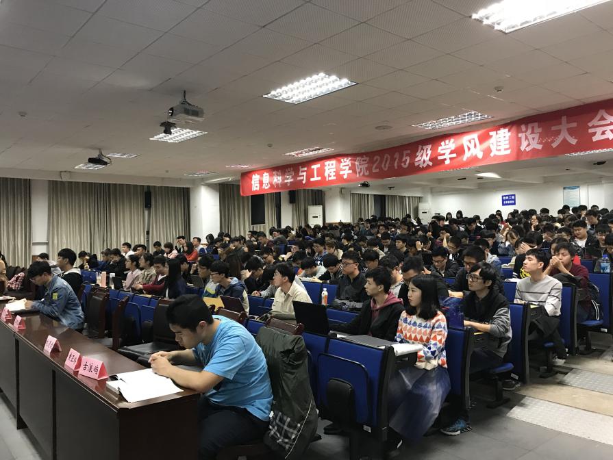 10月22日,信息院2015级年级会在球王会院楼330报告厅召开了“扬帆起航,志成高远”为主题的学风建设大会,为学习之星,进步之星,沙克尔顿获奖班级颁奖,并由公司党委副书记贺迅书记及辅导员贾玲玲老师对加强学风建设的举措进行了发言。这次旨在总结全年级的毕业去向,鼓励同学继续发扬刻苦学习精神,在学习道路上永不懈怠。