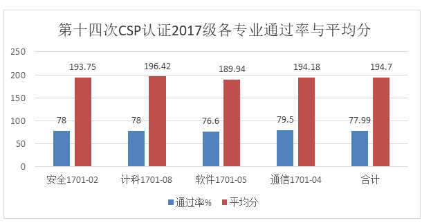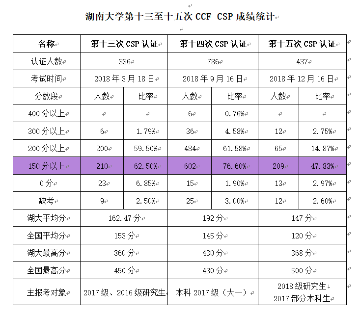 今年三次CCF CSP认证,公司考生也取得了较好的成绩:第十三次平均分162(全国平均分153)、第十四次平均分192(全国平均分145)、第十五次平均分147(全国平均分120),特别是在9月16日的第十四次认证中,平均分创公司历史新高,据CCF CSP官网新闻数据显示每所高校前20名员工的平均分公司位居全国第一,400分和300分以上人数公司均位居全国第一,本次认证考试公司有586名2017级本科生参加,其中400分3人,150分及以上457人,通过率78%,平均分194.7,是公司自2013级本科生参加认证以来成绩最好的一次。