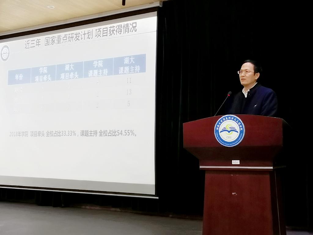 公司秦拯副经理首先做了年度科研工作汇报。报告分三个方面:2018年颁布的科研新政;2018年公司科研工作总结,2019年公司科研工作计划。公司在刚刚过去的一年里实现了几个方面的突破:国家级重大项目、科研经费7000万元大关、国家级科研基地、省部级科技一等奖。报告最后,秦经理总结了公司科研发展中的新问题和今年的新目标。