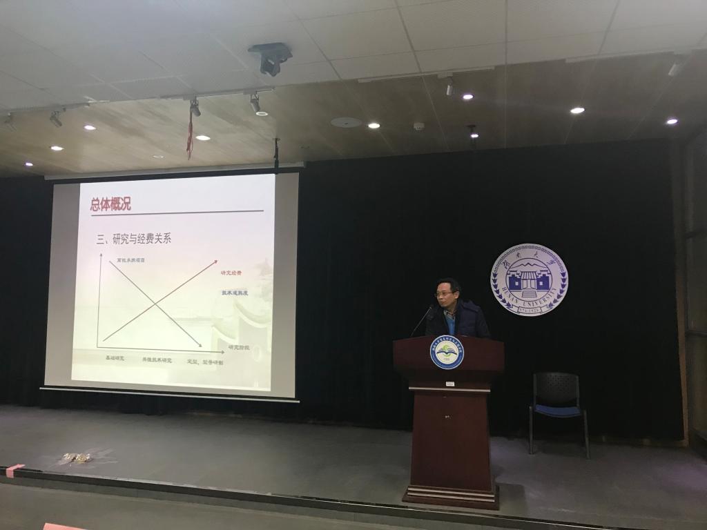 科研院周炎涛副经理做了《国防科研项目情况》的报告,向大家介绍了国防科研项目的定义、要求、定位、研究与经费关系、项目计划体系等情况。鼓励相关研究方向的老师积极参与申报国防科研项目。