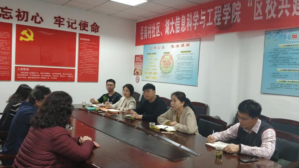 会议开始,岳南村社区党支部王革红书记对公司代表的到来表示欢迎。针对“区校共建”,王书记指出:第一,就去年的区校共建而言,社区能够充分利用公司的教师与员工资源,一起举办了多项活动,并取得了一定成效。双方也应该继续利用好岳麓区大学城的优势,让区校共建成为区域化党建的一个亮点、创新点。第二,书记认为双方应该把“区校共建”活动进行系统安排,就社区助理这一活动而言,员工在社区工作时间比较短,没有办法真正融入和适应社区的工作,这就是一个可以改进的点,真正让员工在社区能够有收获。第三,社区希望19年在18年的基础上,能够继续把“四点半课堂,电器修理,电器知识普及”这些活动办好,让居民受益,同时,大家也要加强沟通,把区域化党建的目标认清楚,在坚持常规已有活动的同时,增加创新点,打破千篇一律。