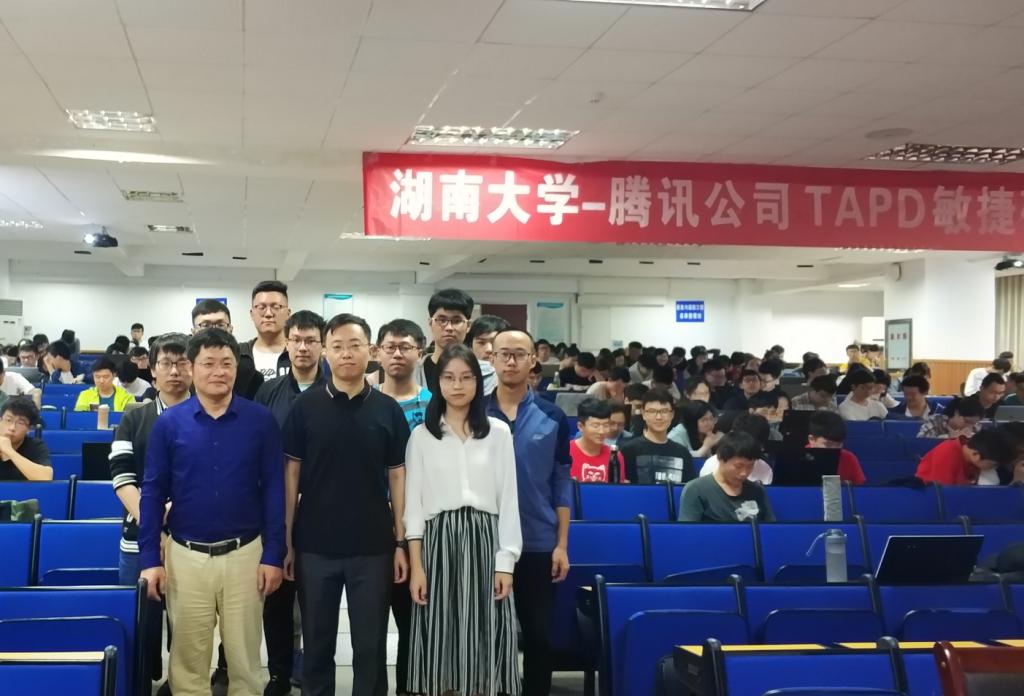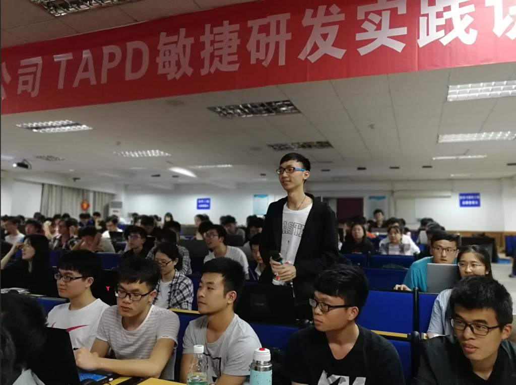 2019年5月21日晚上7:00,腾讯TAPD敏捷研发实践讲座在软件大楼401报告厅开讲,以软件工程专业2016、2017级本科生为主体的200余人参加了讲座。讲座由软件工程系欧阳柳波老师主持,腾讯公司TAPD高级技术总监刘阳先生介绍了腾讯敏捷研发文化的由来、发展和现状,讲解了敏捷开发过程的基本实践活动,分享了腾讯公司的敏捷实践项目案例,包括“校园小拍”、“王者荣耀”和“微信”等团队;腾讯公司TAPD产品经理刘玉媛女士介绍了TAPD产品运营和腾讯TAPD实习生的相关信息。