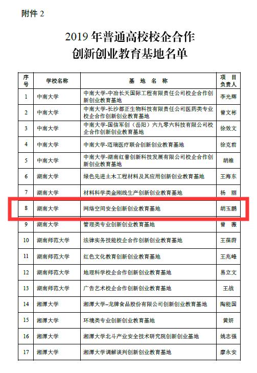 湖南合天智汇信息技术有限公司是中国网络空间安全协会理事单位,国家认定的高新技术企业,中国网络空间安全协会网络安全岗位培训认证试点单位。安全系与该公司合作共建的“网络空间安全创新创业基地”获批湖南省创新创业省级基地。同时安全系与该公司合作申请的网络空间安全实践平台也获批2019年第一批产学合作协同育人项目立项。