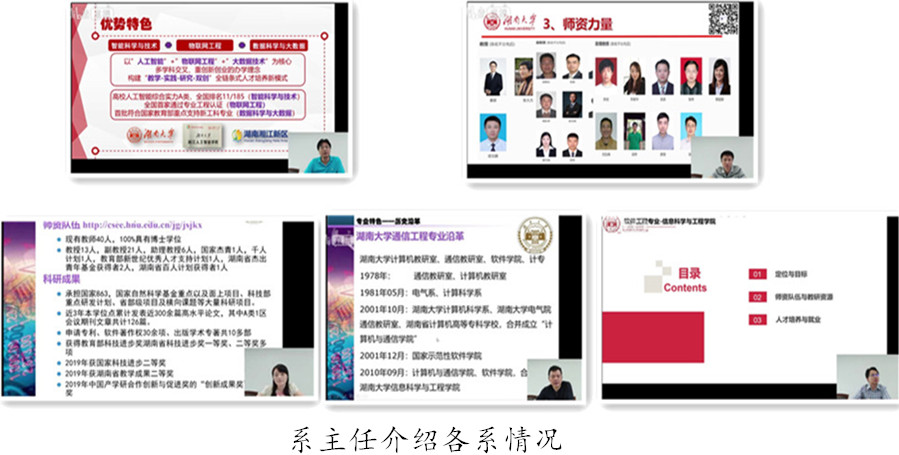 优秀毕业生代表刘虹雨(虎牙)、缪莲海(阿里)和陈岑(新加波国立大学)分享了他们积极进取、勇于创新、拼搏奋斗的学习生活经历,并对同学们寄予了殷切的希望和祝福。计算机科学系、计算机工程系、软件工程系、通信工程系和网络空间安全系主任分别介绍了各系团队、研究团队、重点实验室等情况。