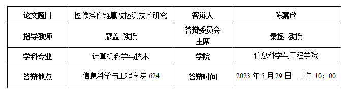 Jiaxin Chen, Xin Liao, Wei Wang, and Zheng Qin. Identification of image global processing operator chain based on feature decoupling[J]. Information Sciences, 2023, 637: 118961.(SCI一区期刊, 第一作者)