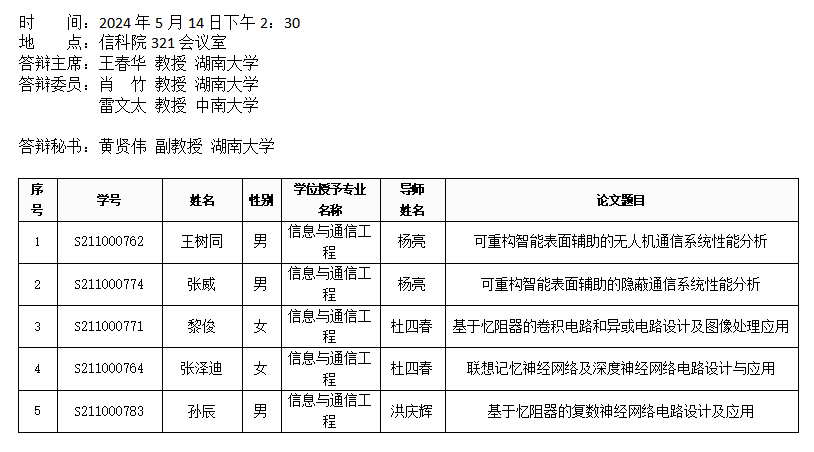 球王会(通信系)2024年5月14日硕士答辩公告