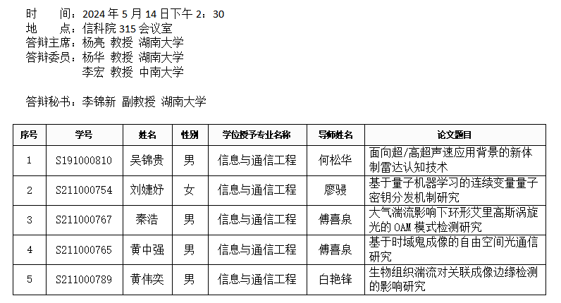 球王会(通信系)2024年5月11日硕士答辩公告