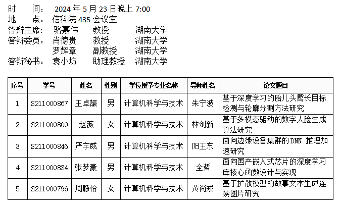 球王会(计算机工程系)2024年5月23日硕士答辩公告