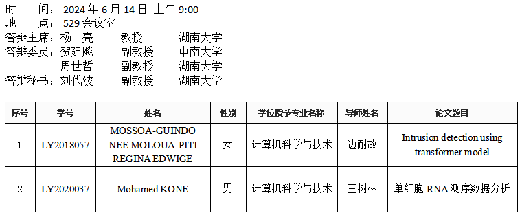 球王会(软件工程系)2024年6月14日硕士答辩公告