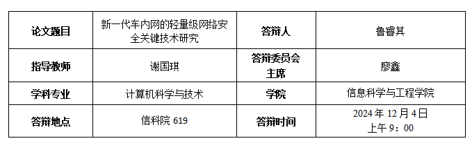 [7] 谢国琪,鲁睿其,黄爽. 基于汽车CAN-FD网络的信息安全通信方法. 申请公布号 CN 114945169 A。(发明专利,员工中排名第一)