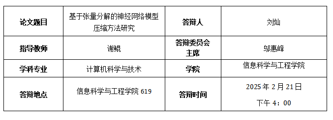 [1] Kun Xie, Can Liu, Xin Wang, Xiaocan Li, Gaogang Xie, Jigang Wen. Neural Network Compression Based on Tensor Ring Decomposition [J]. IEEE Transactions on Neural Networks and Learning Systems (TNNLS), 2024: 1-15. (SCI一区, 导师第一作者)
